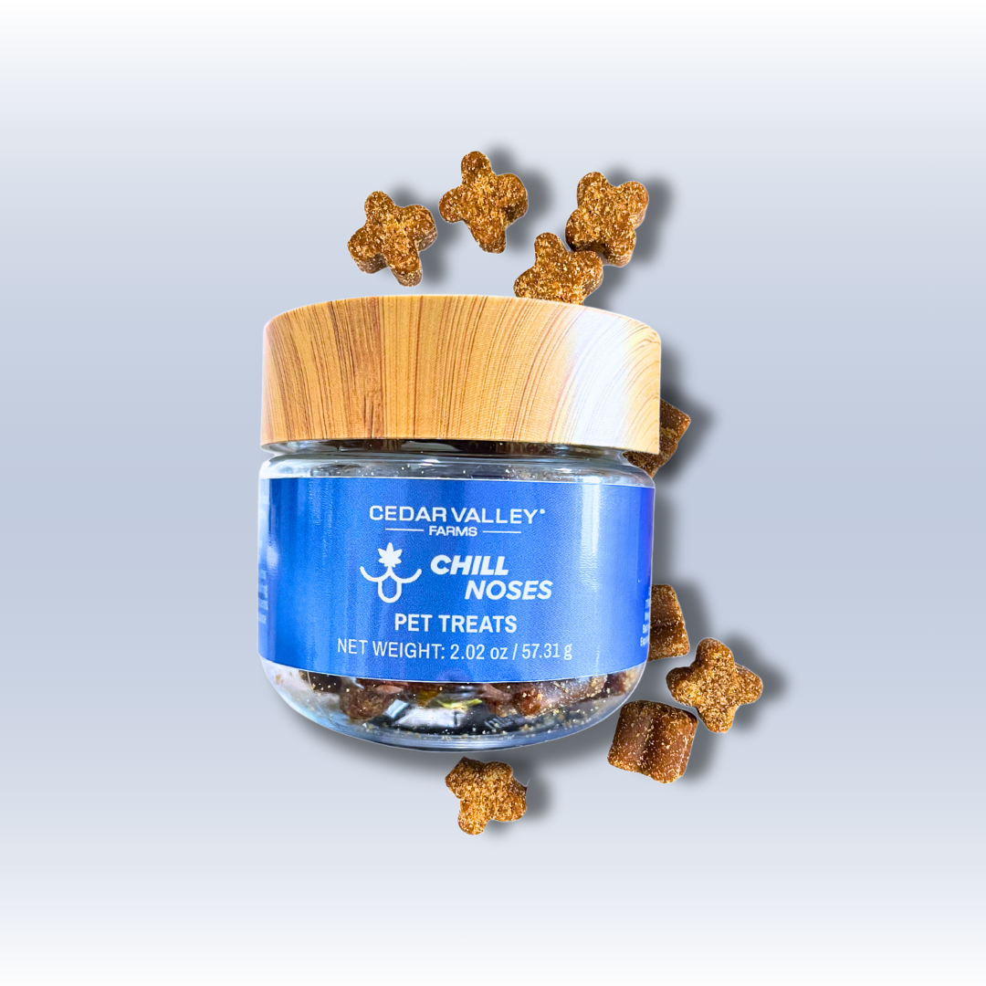 "When I had to evacuate with my dog in NC during Hurricane Helene, the Pet Treats from Cedar Valley were instrumental in helping my dog cope with the fear, upheaval and stress of experiencing a lot of new things all at once. (Elevators were a particular challenge.) I don't know how we would have come out of the ordeal without this product. I'm so grateful to Cedar Valley, not just for their products but also their STELLAR customer service. (I found them when I lived in Ohio a few years ago, but still order from them after moving several states away.)". -Denise H.